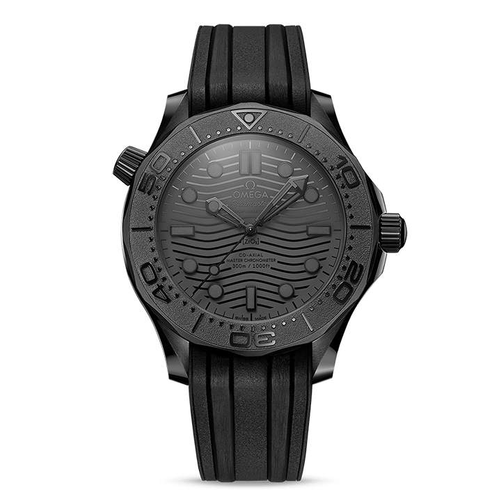 Completing the look is an integrated black rubber strap with black ceramic buckle. Adding some light to the darkness is a window with a clear view of the movement. Visible through the sapphire-crystal on the wave-edged caseback is OMEGA’s Co-Axial Master Chronometer Calibre 8806.
