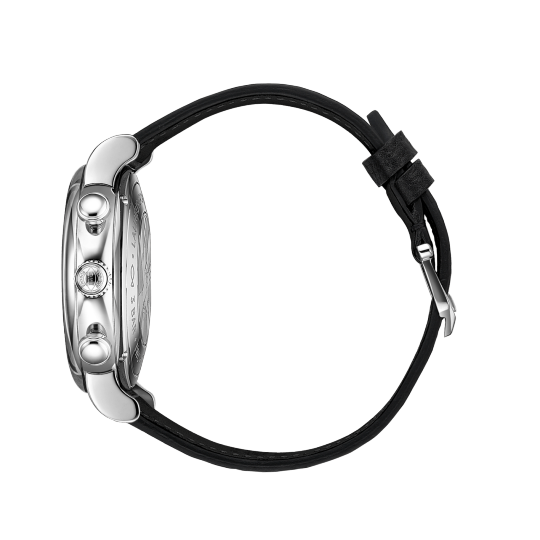 Stainless steel case, Automatic, self-winding, Diameter 39.0 mm, Black calfskin strap, Strap width 20.0 mm.
