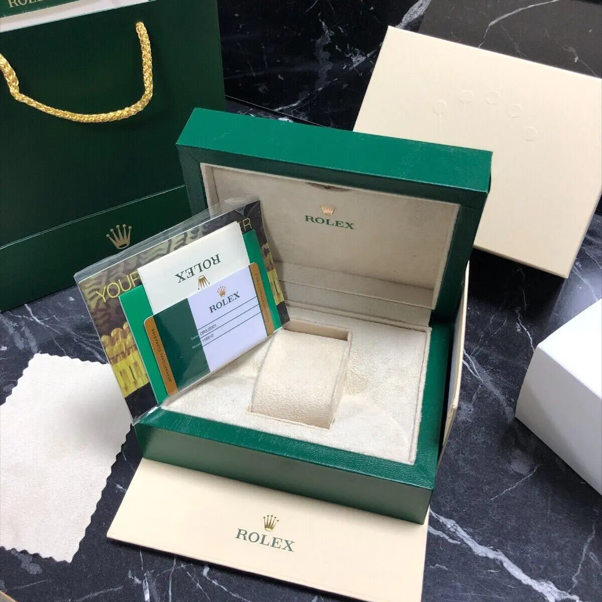 The Superlative Chronometer status is symbolized by the green seal that comes with every Rolex watch and is coupled with an international five-year guarantee.