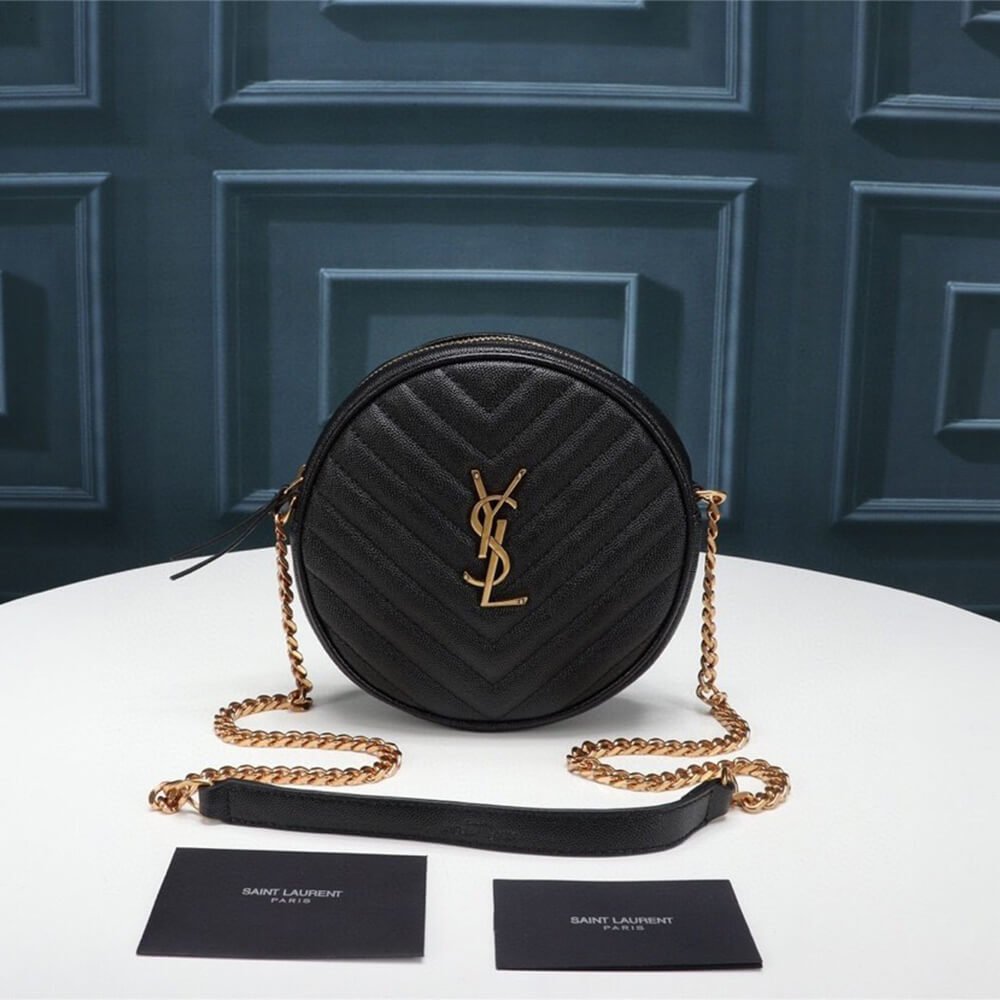 VINYLE ROUND CAMERA BAG IN CHEVRON-QUILTED GRAIN DE POUDRE EMBOSSED LEATHER